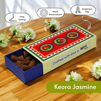 Complete Set Contents - Includes 25 Mogra-Lavender sticks + 25 Keora-Jasmine cones, consisting of total 50pcs. Includes two free ceramic stand inside each box.